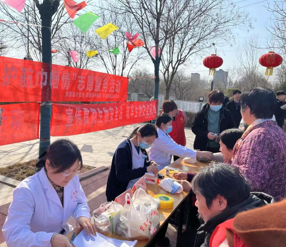 在活动现场,工作人员通过悬挂横幅、现场座诊、发放资料等方式,在免费为群众体检的同时,向群众宣讲《中华人民共和国生物安全法》的核心要义,并就生物安全与人民群众健康的关系进行了深入浅出的阐释,让群众进一步了解生物安全与疫情防控、国家安全的关联性,增强了群众自觉维护国家安全的意识。此次宣传义诊活动共为群众免费体检100余人次,发放宣传资料500余份。