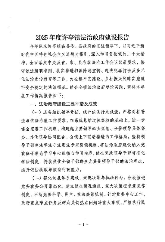 赞皇县许亭镇2025年法治政府建设工作报告