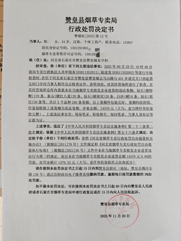 行政处罚决定书--赞烟处【2025】第12号