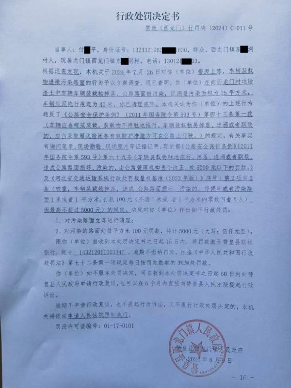 赞政(西龙门)行罚决〔2024〕C-011号