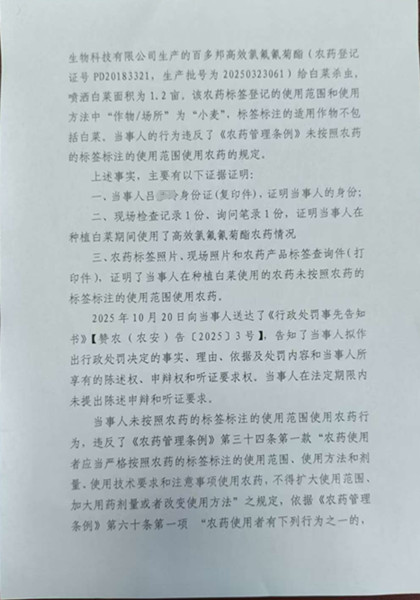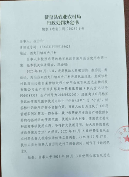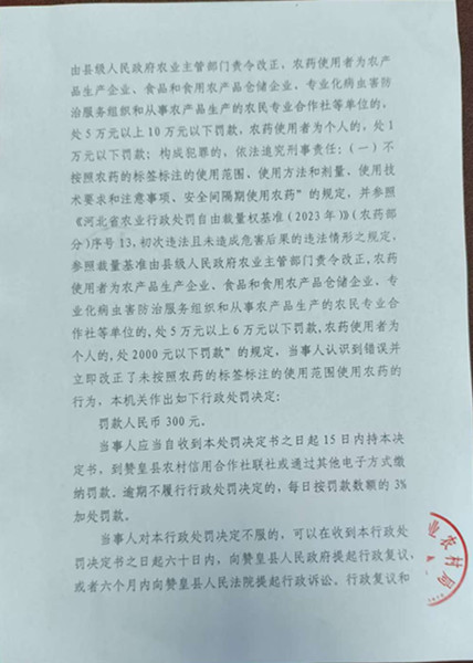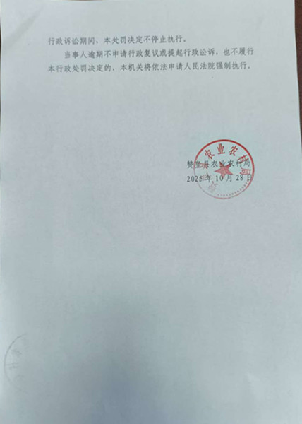 赞皇县农业农村局行政处罚决定书【赞农(农安)罚〔2025〕1号】