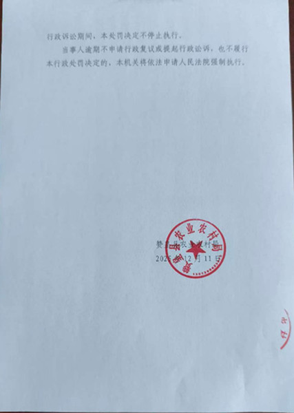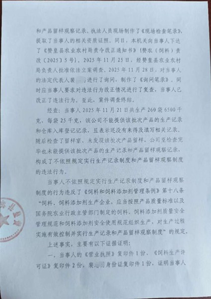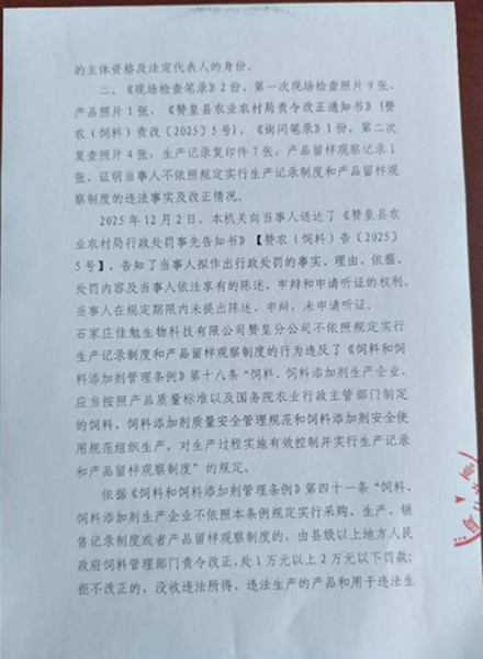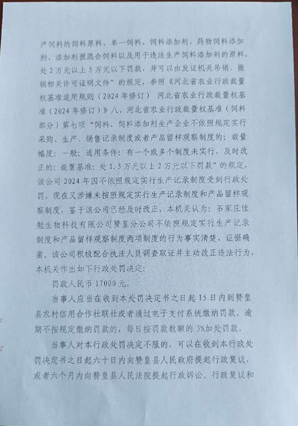 赞皇县农业农村局行政处罚决定书【赞农(饲料)罚〔2025〕5号】