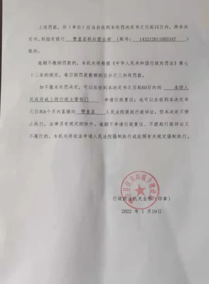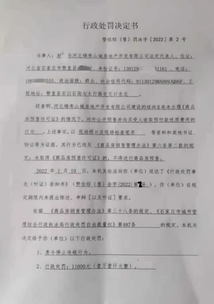 行政处罚决定--赞住综(售)罚决字【2022】第2号