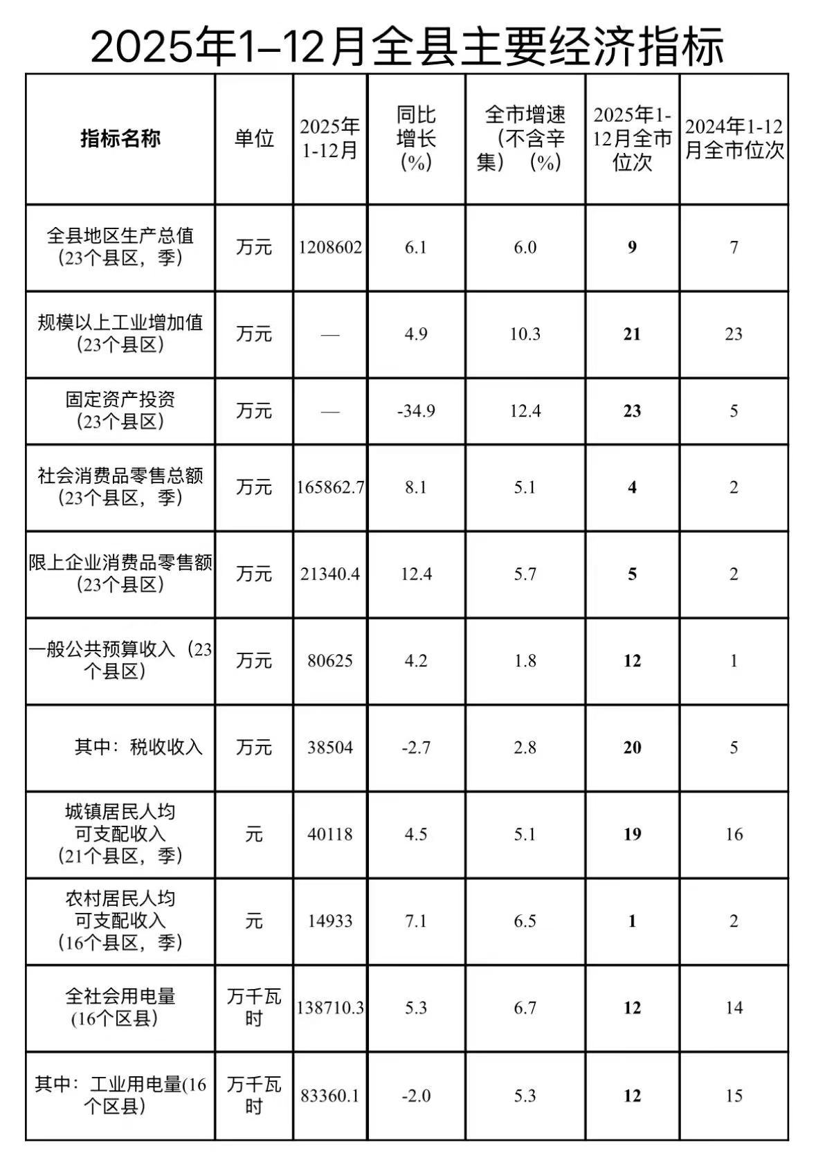 2025年1-12月全县主要经济指标